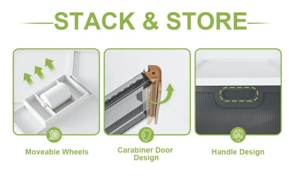 【Side Handles and Detachable Wheels】: There are 2 handles on both sides on this stackable storage bins that makes it easily bring up and stack them together. 4 detachable wheels makes it easy to move to anywhere when they are stacked together. Also you can easily clean the place under this storage bins with wheels by just push a little. The wheels can be detached when the storage bins no need to move often.