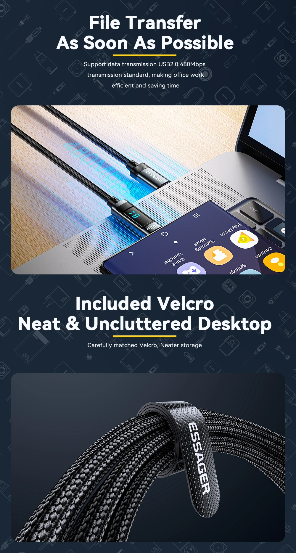 Essager USB C to USB Type C cable supports 240W/ 100W/ 30W fast charging and can be used to charge laptops/tablets/mobile phones.