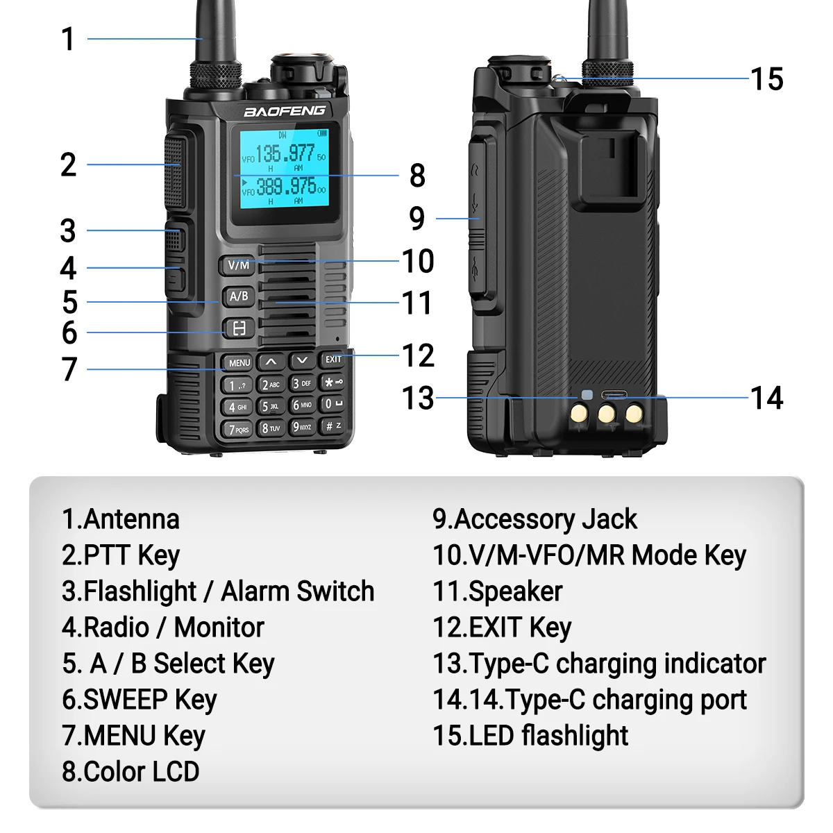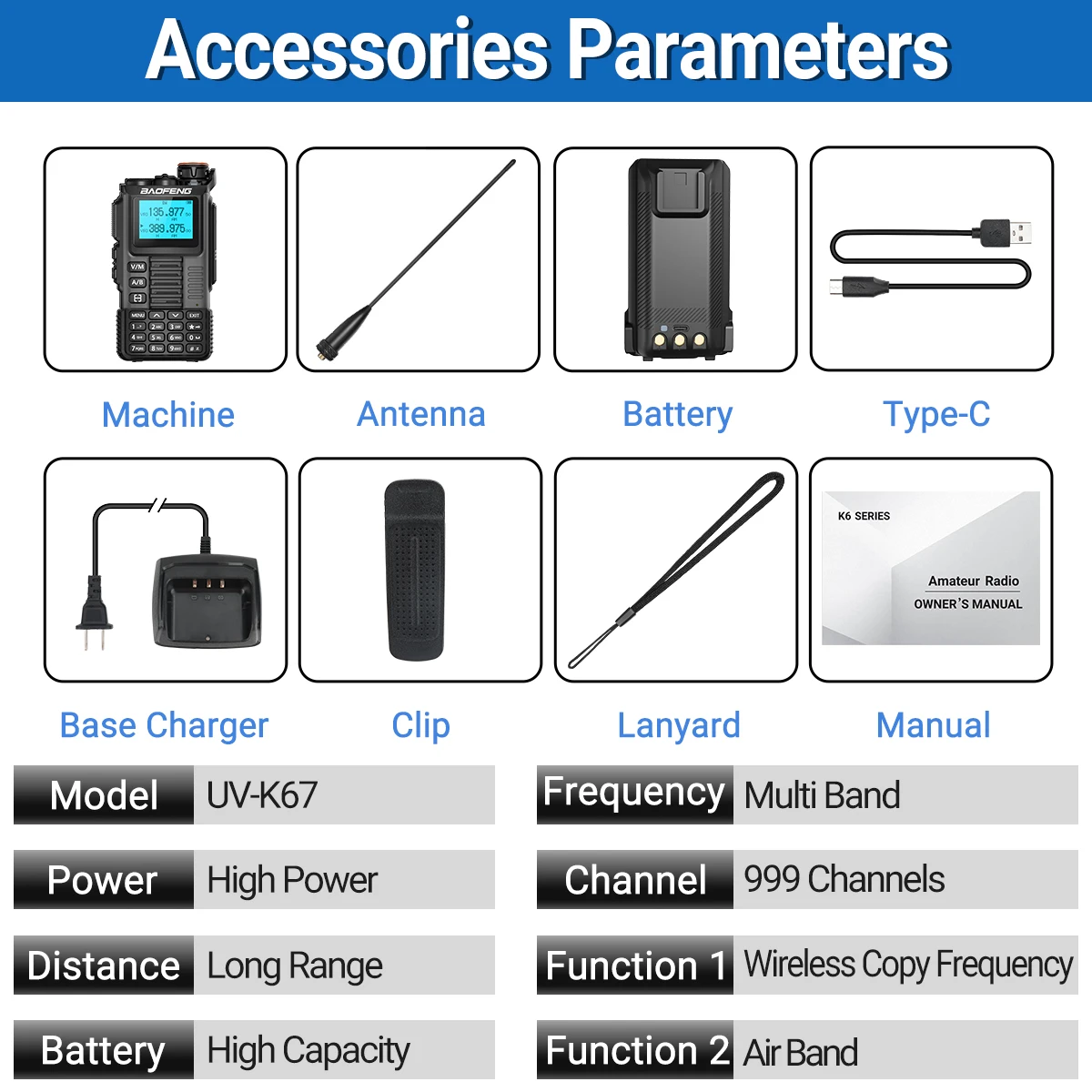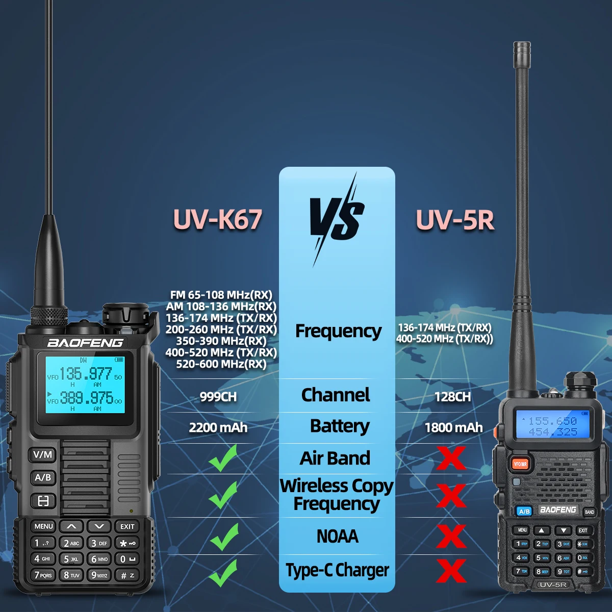 Baofeng UV-K67 Walkie Talkie Long Range Air Band Wireless Copy Frequency High Power Transceiver NOAA Type-C Charger Ham Radio