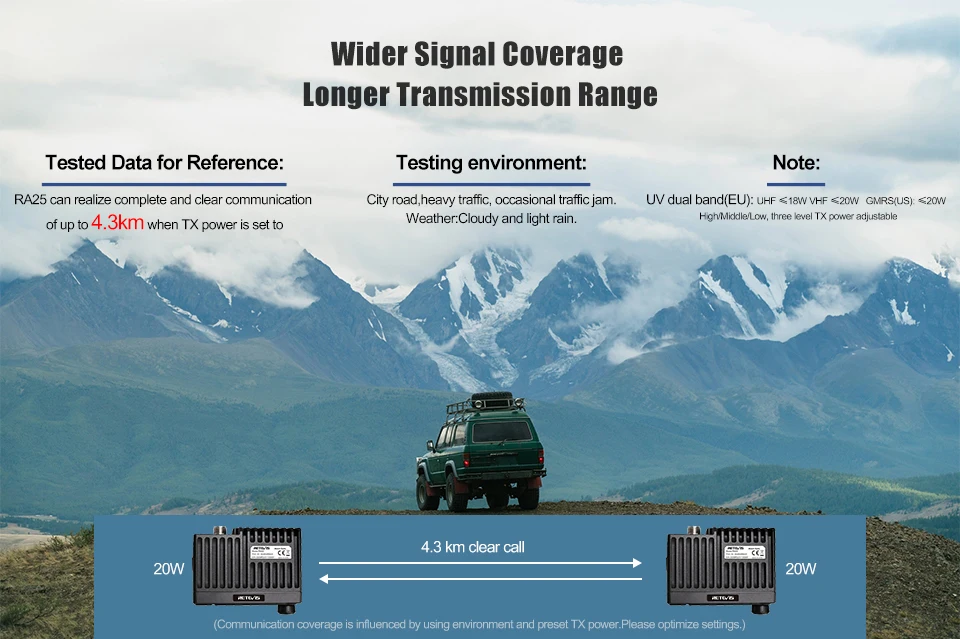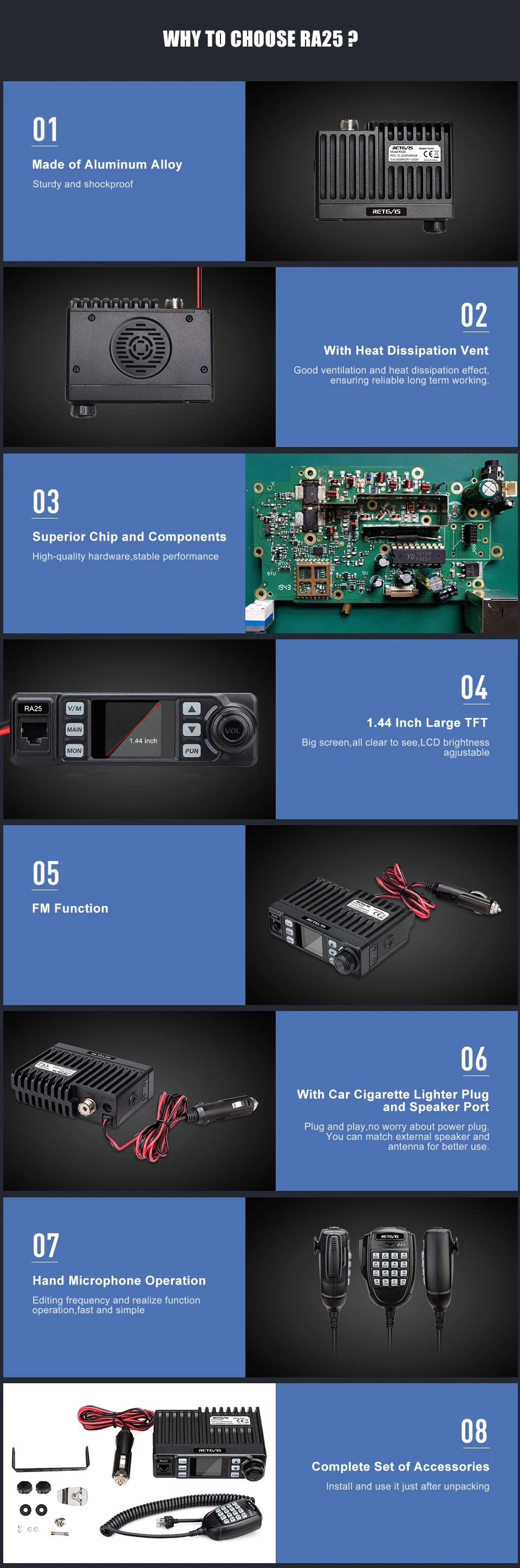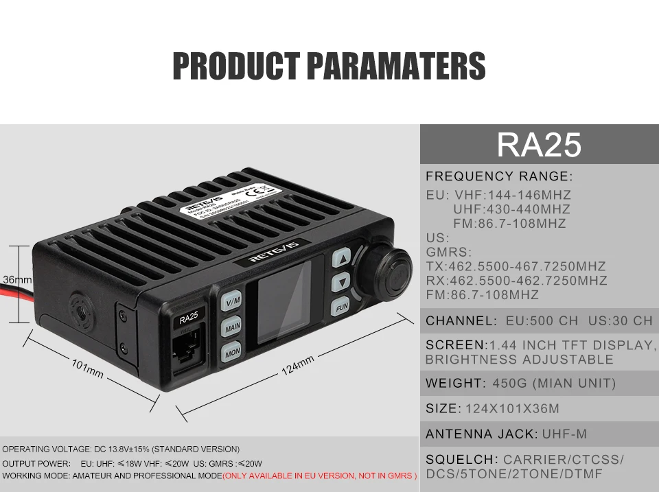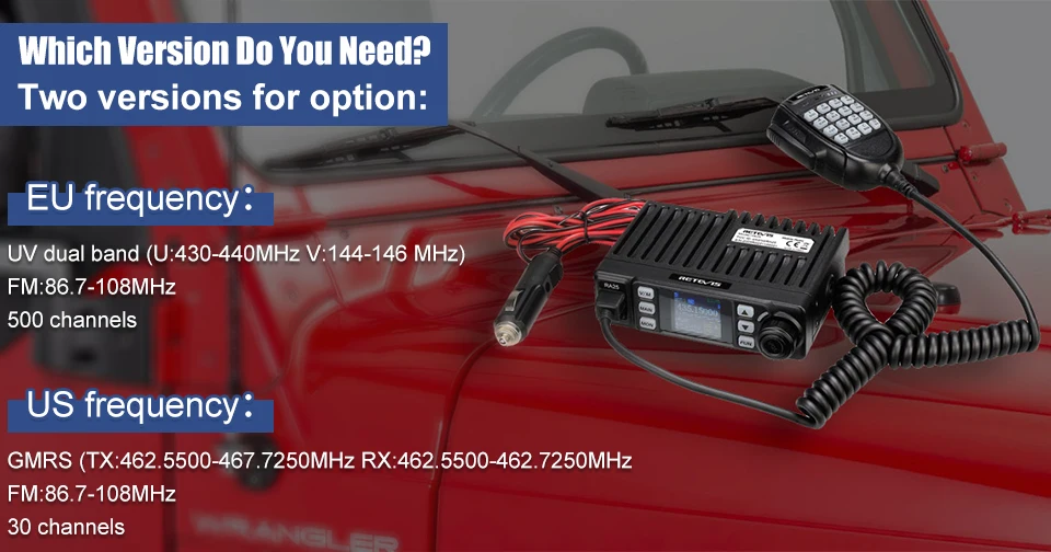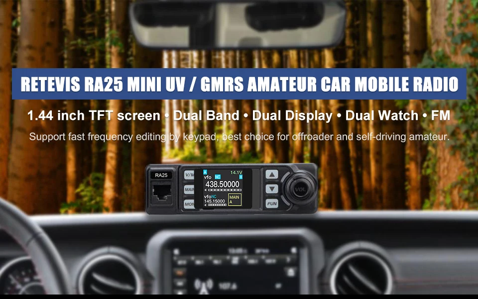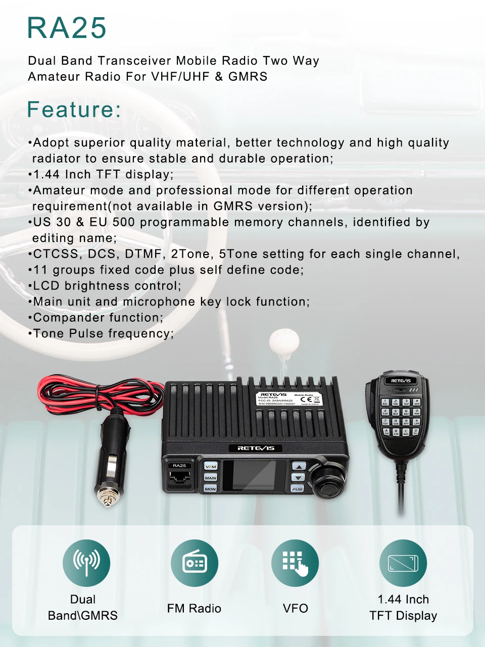 Retevis RA25 Car Mobile Radio UV Dual Band/GMRS TFT Display 20W Walkie Talkie for Car 500/30CH Car Two-way Radio Amateur Truck