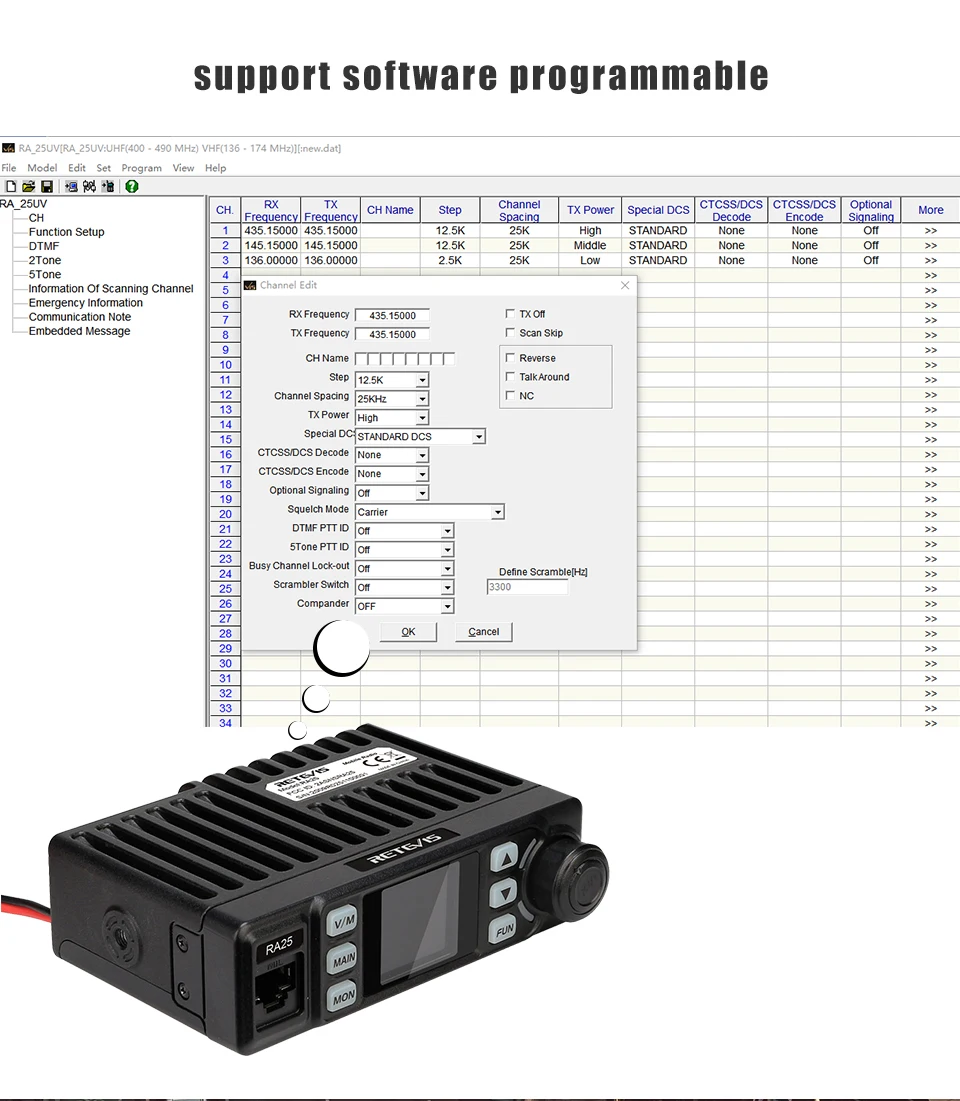 4. CTCSS, DCS, DTMF, 2Tone, 5Tone setting for each single channel,