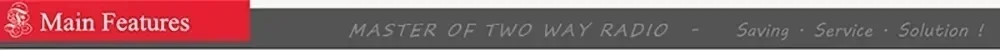 • Scanner function: VFO scan range setting, three scan recovery methods, channel scan, CTC/DCS scan, scan channel addition and removal