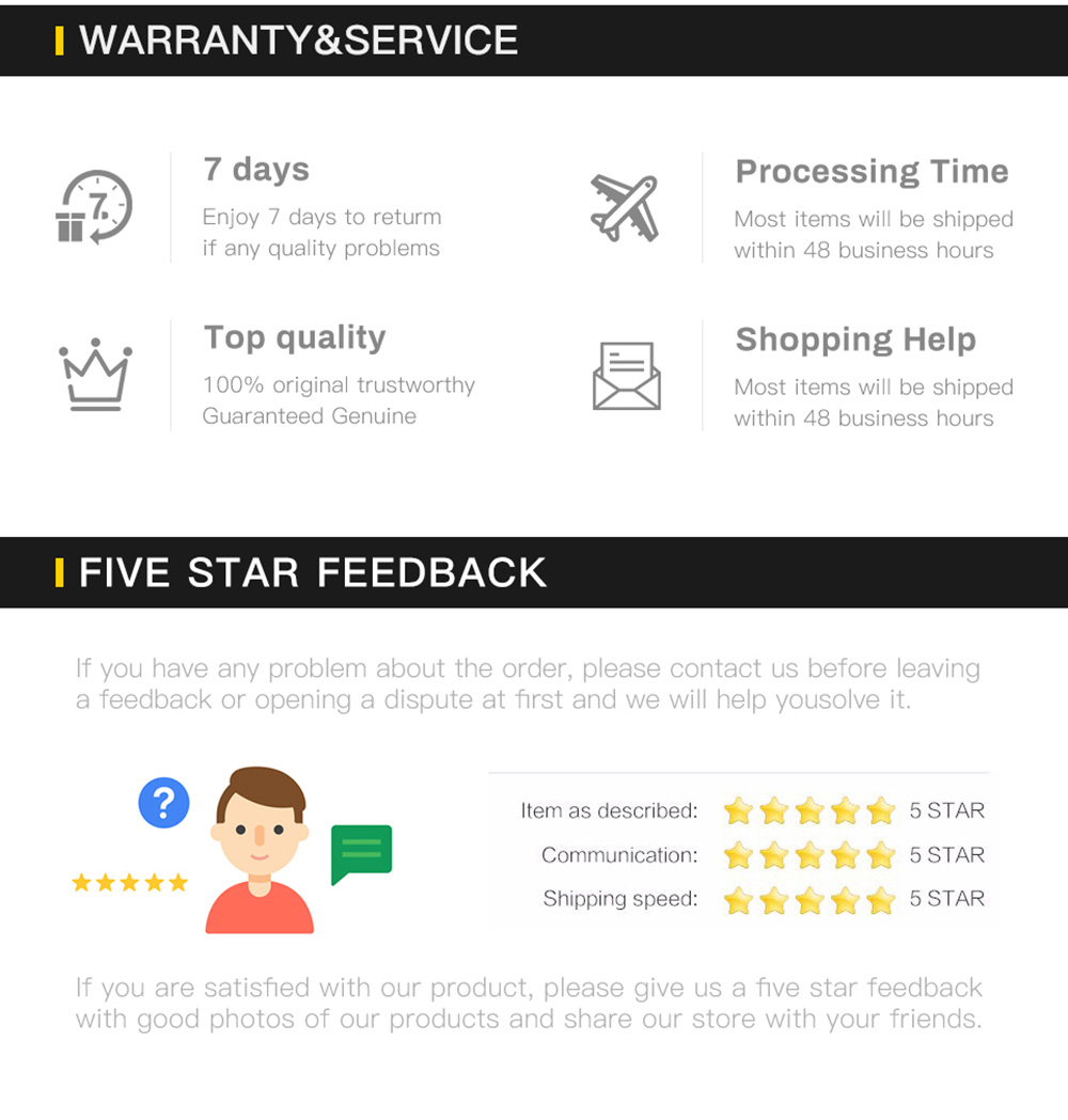 *We will be appreciate that if you could share your feelings about our products with other buyers by leaving review or feedback;
