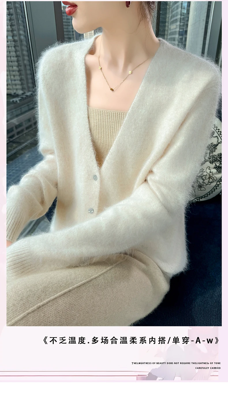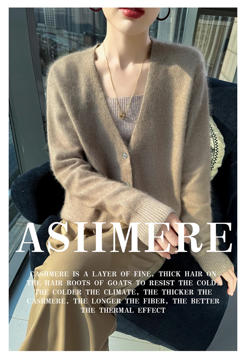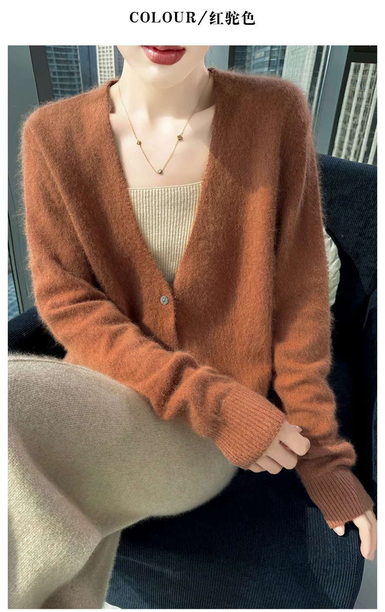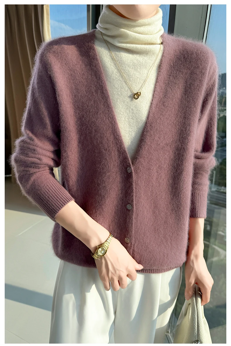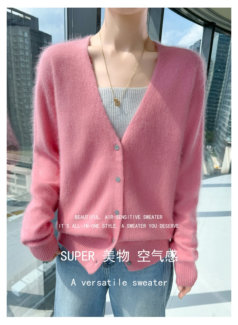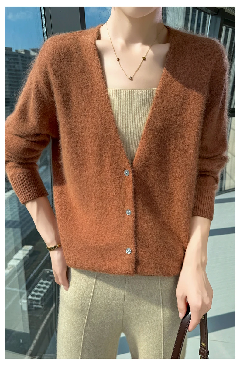 Crafted from pure mink cashmere, this cardigan offers unparalleled softness and warmth, perfect for autumn and winter wear.
