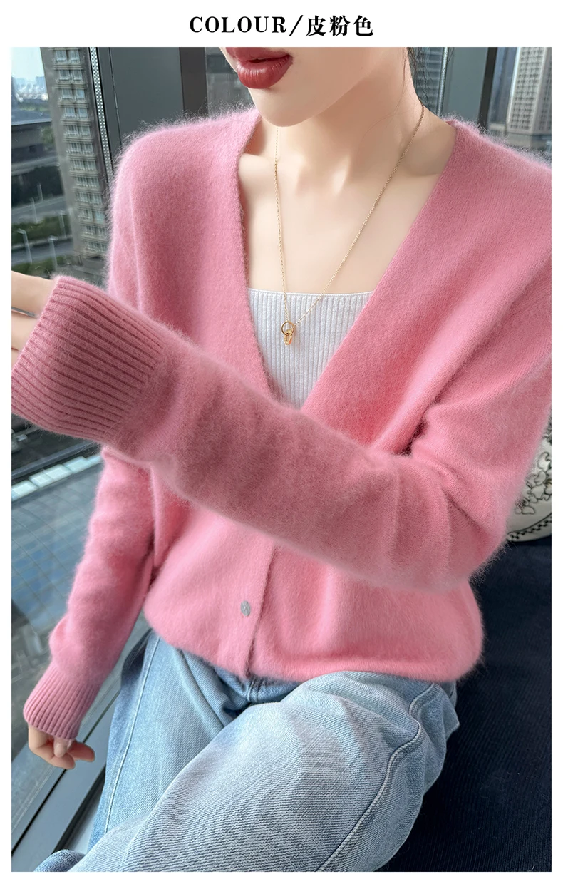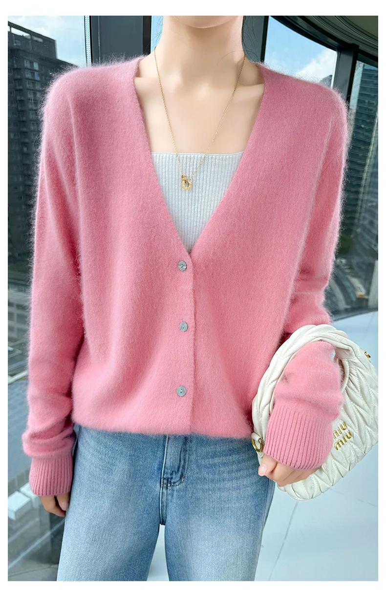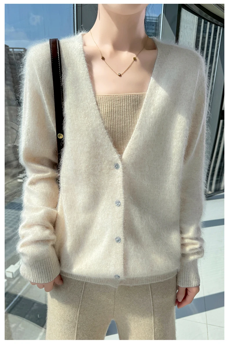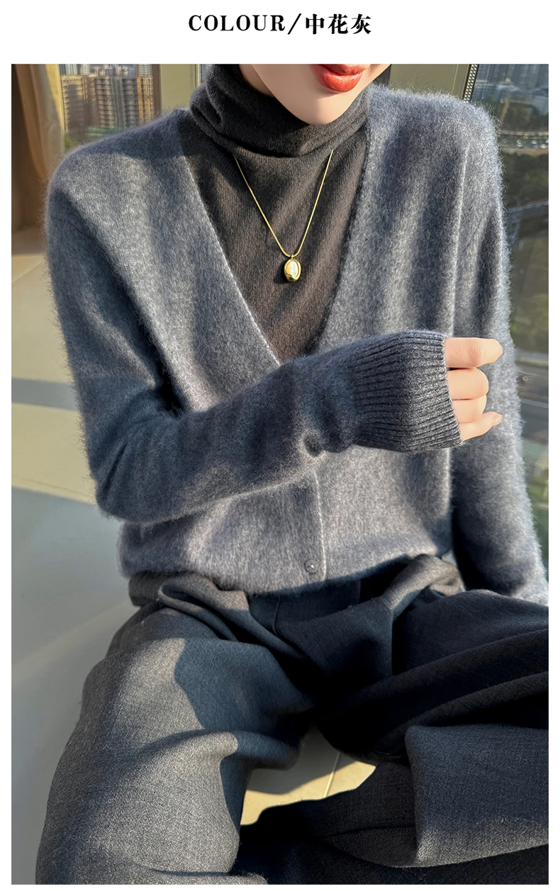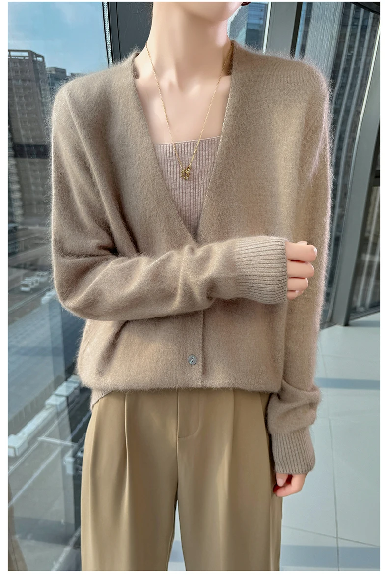 Crafted from pure mink cashmere, this cardigan offers unparalleled softness and warmth, perfect for autumn and winter wear.