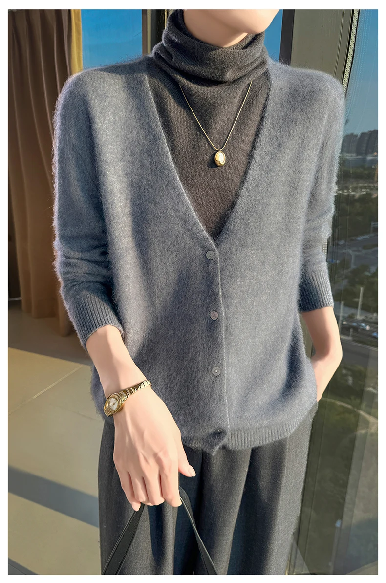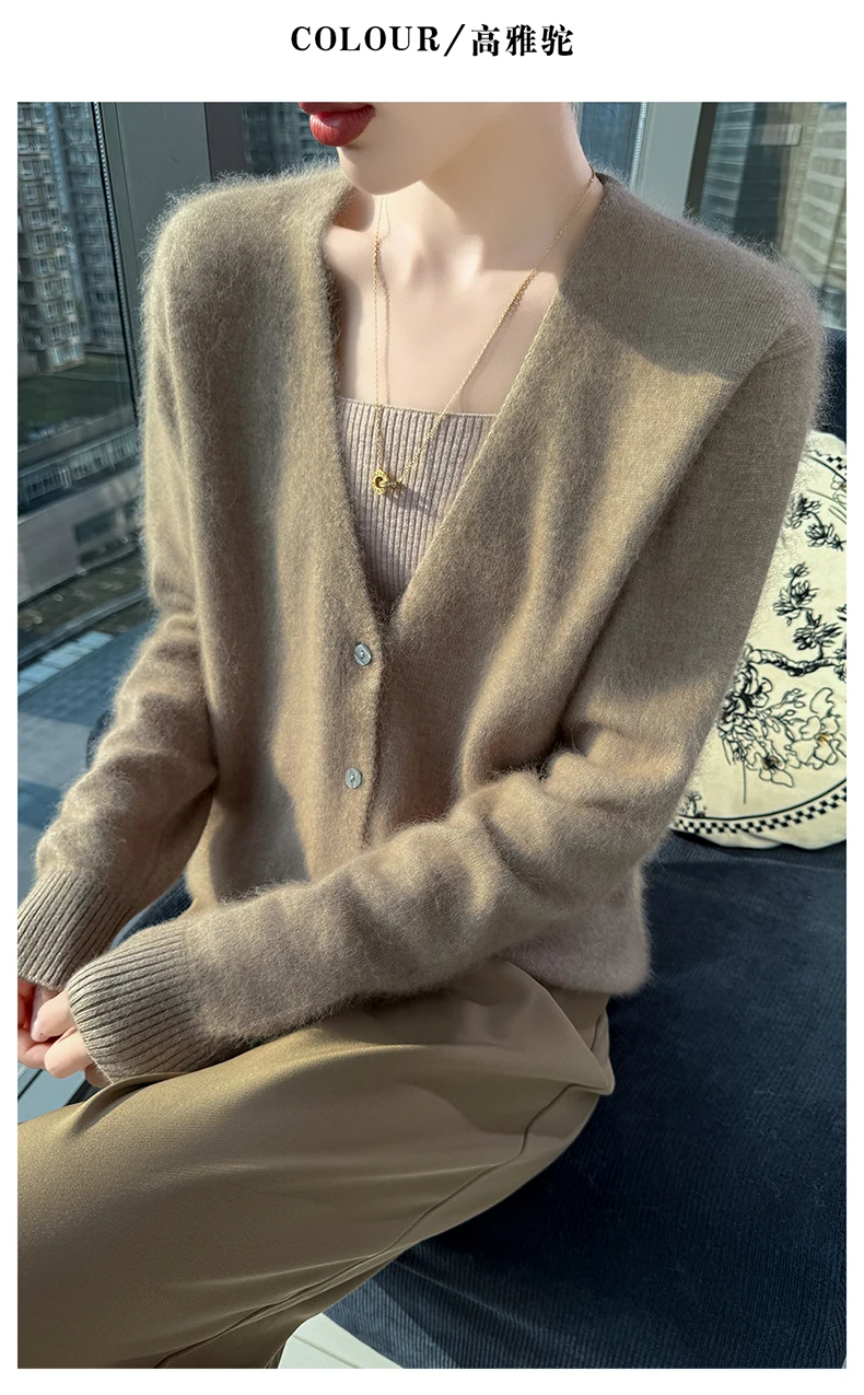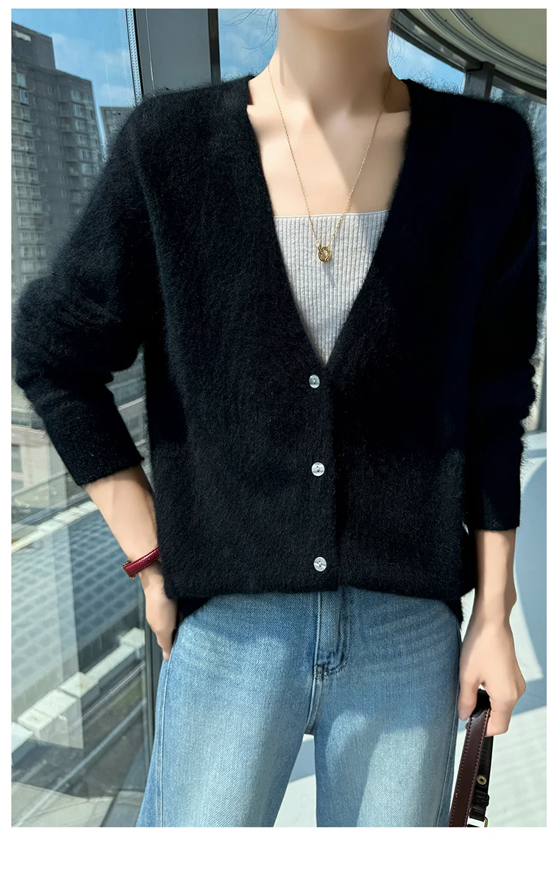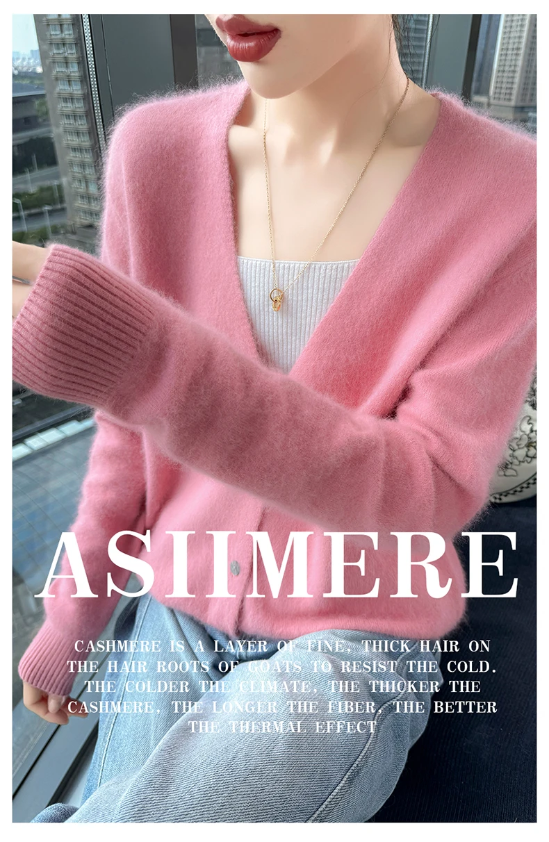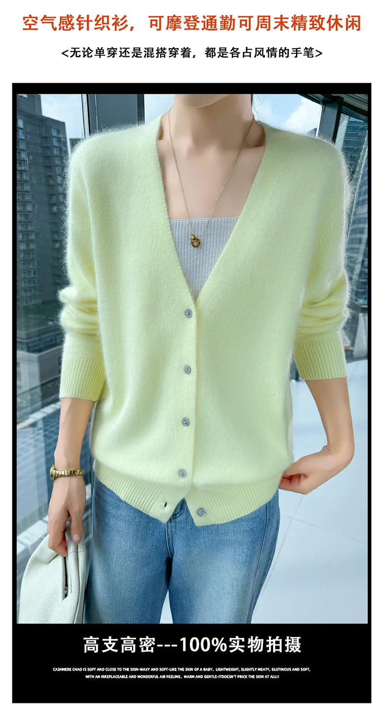 Crafted from pure mink cashmere, this cardigan offers unparalleled softness and warmth, perfect for autumn and winter wear.