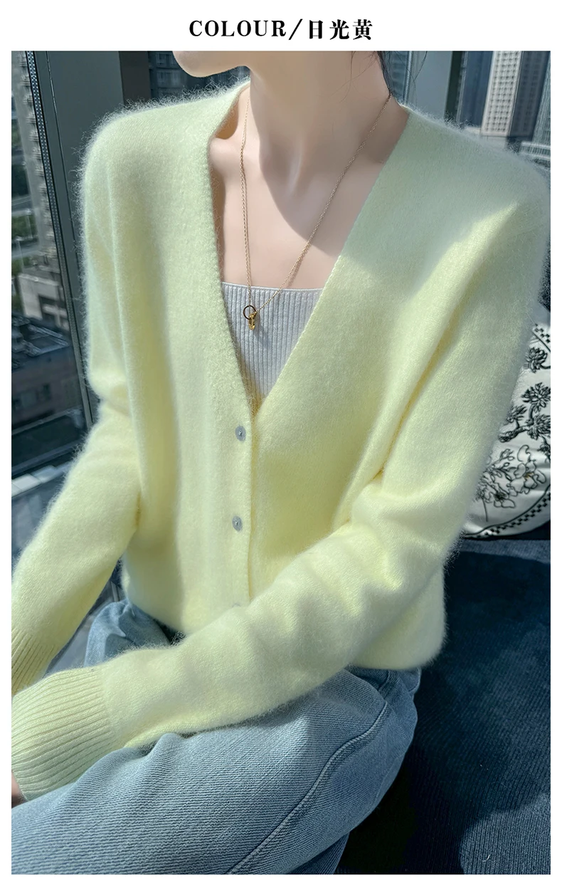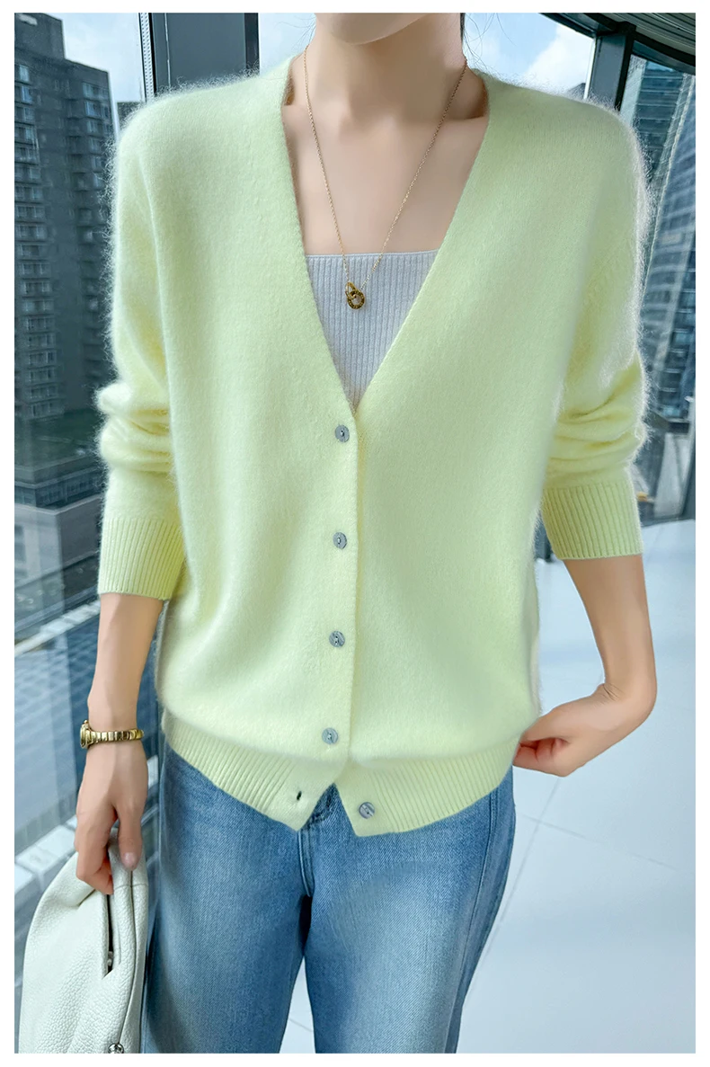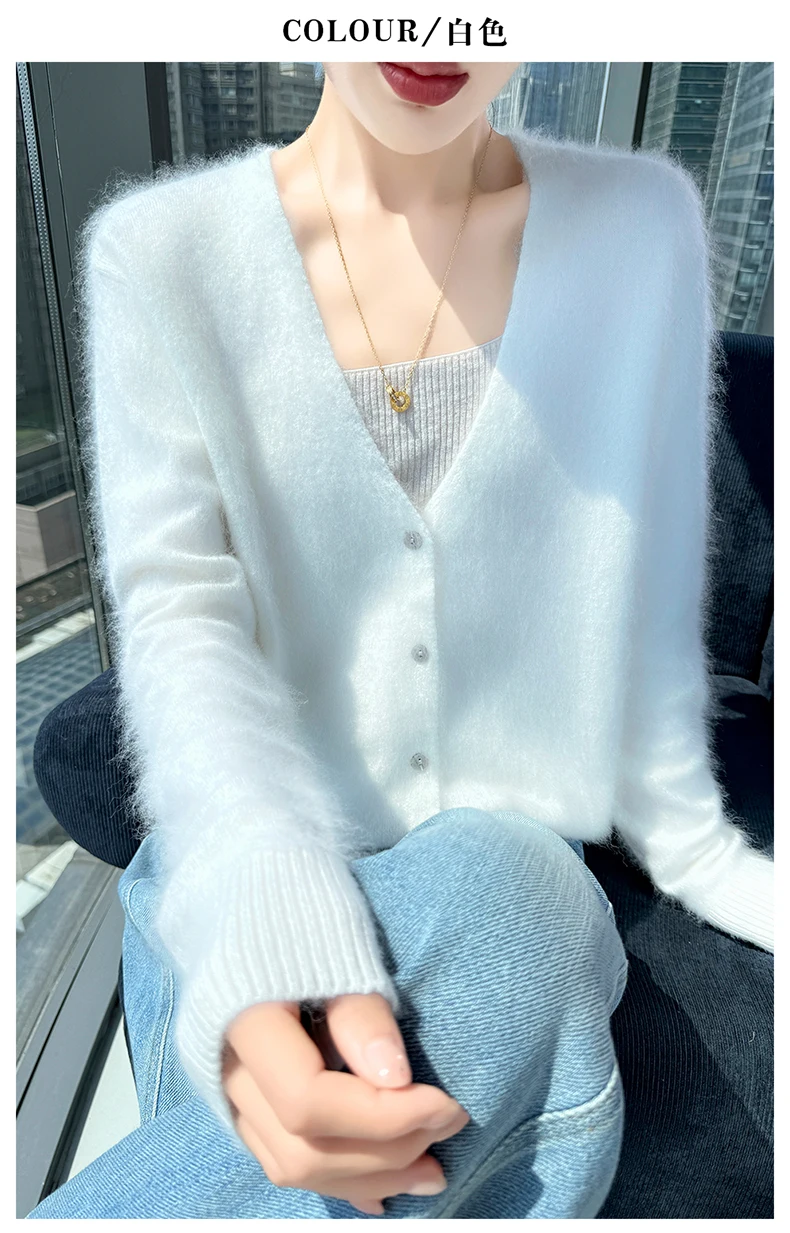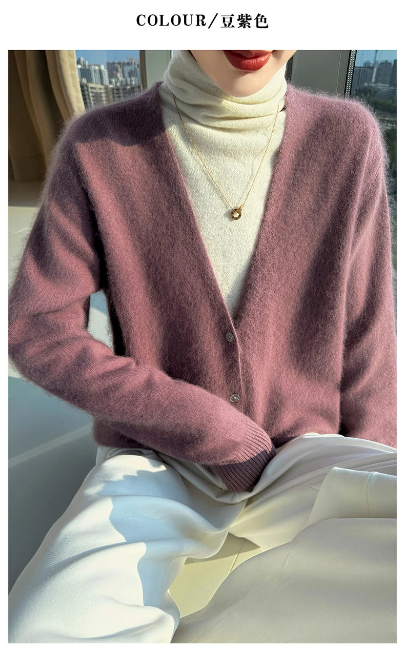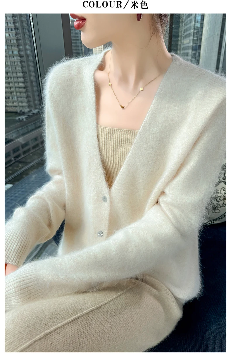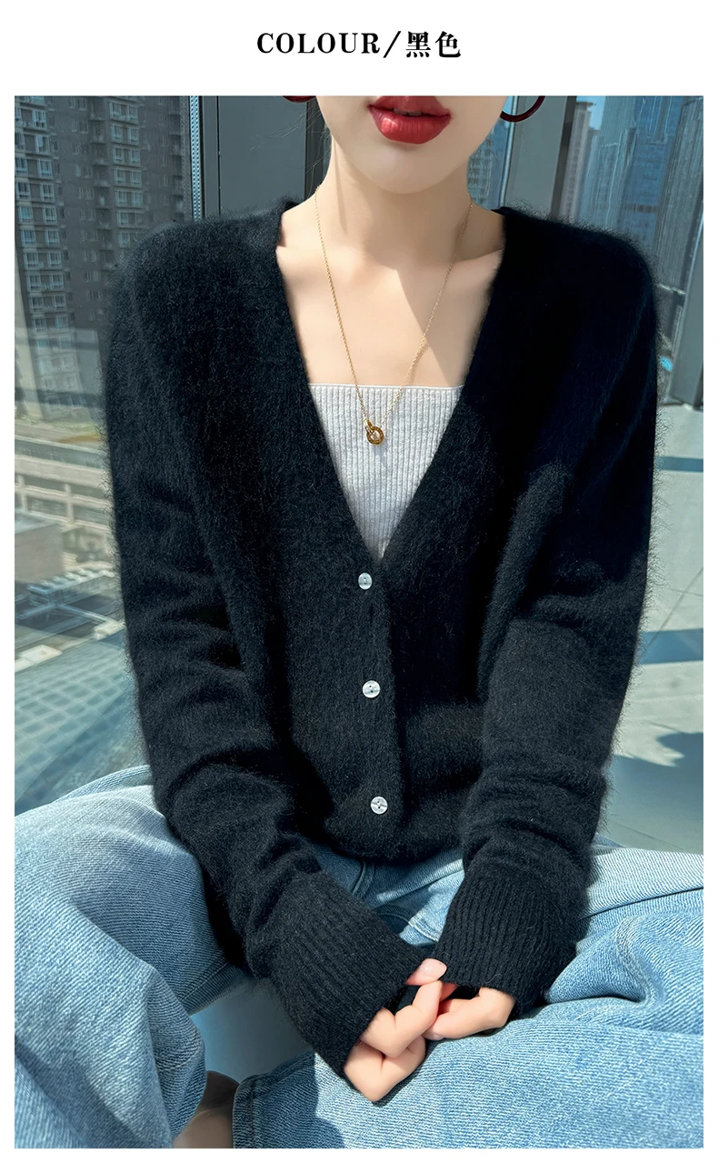 Crafted from pure mink cashmere, this cardigan offers unparalleled softness and warmth, perfect for autumn and winter wear.