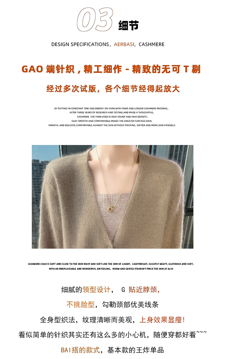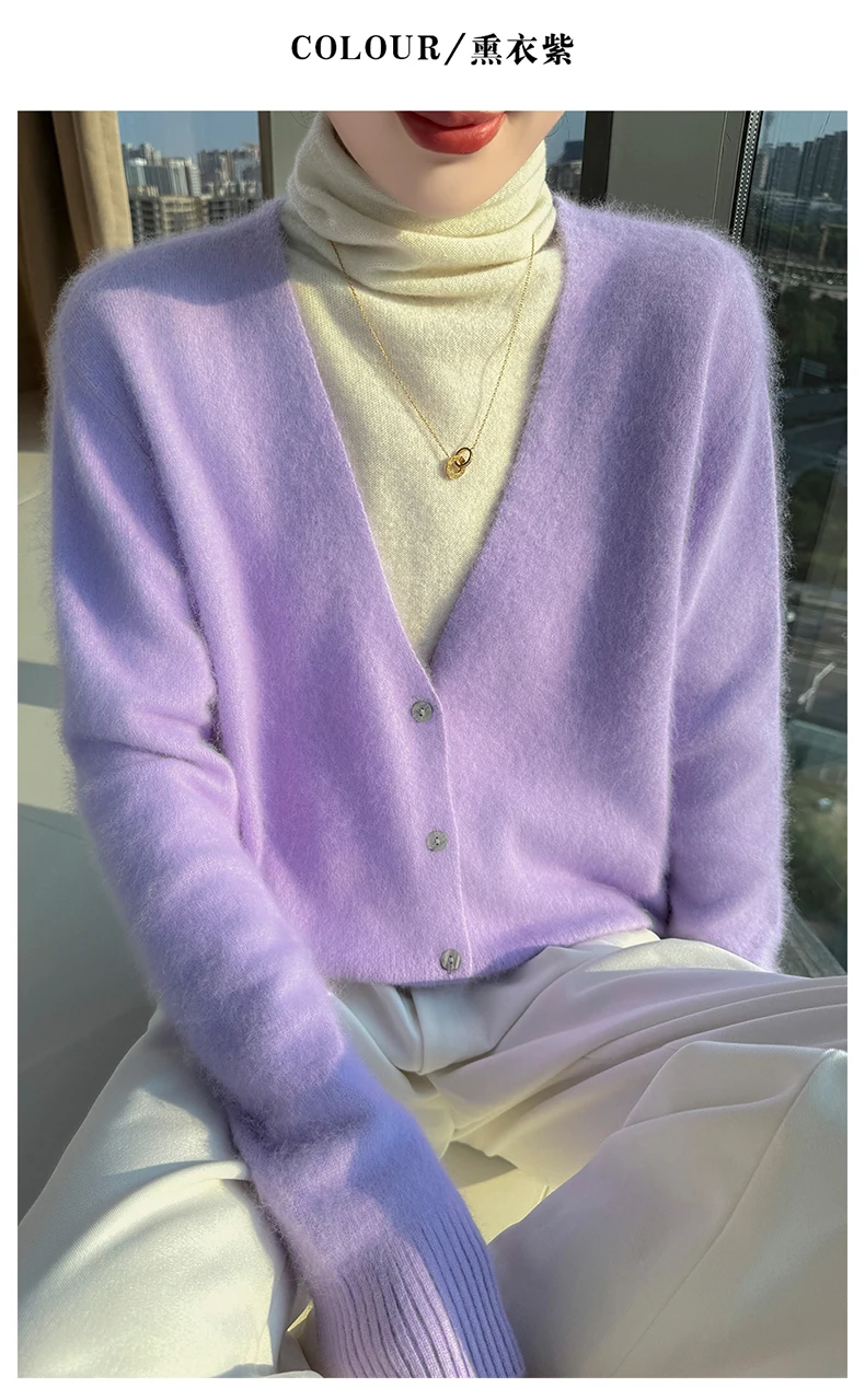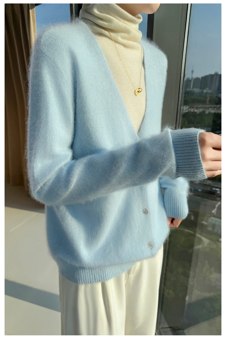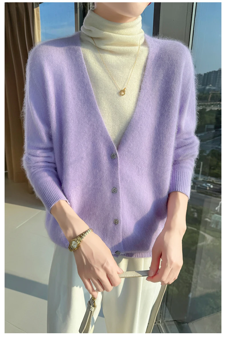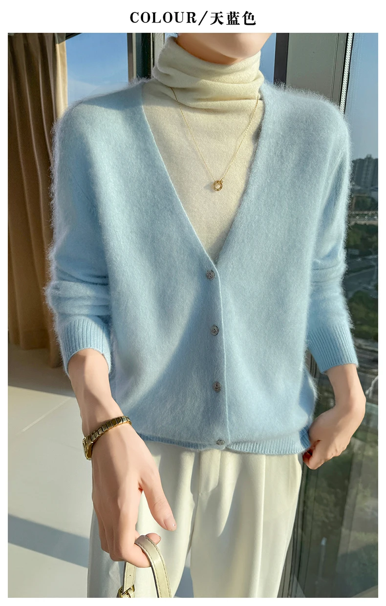 Crafted from pure mink cashmere, this cardigan offers unparalleled softness and warmth, perfect for autumn and winter wear.