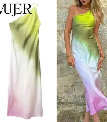 MUJER Tie Dye Long Dress Women Asymmertic Satin Backless Dress Woman Off Shoulder Sexy Evening Party Dresses Midi Summer Dresses