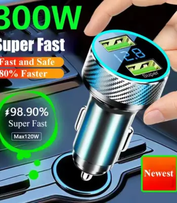 2 in 1 USB Car Charger Adapter 300W Super Fast Charge with Voltage Monitor for iPhone Samsung iPad Huawei Oneplus OPPO VIVO