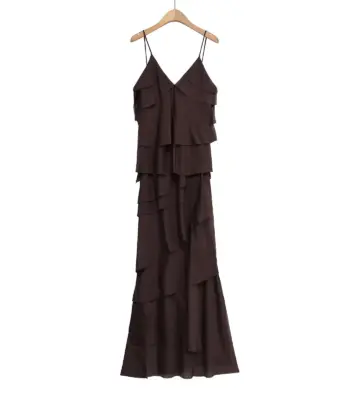 2025 summer new women’s casual fashion simple comfortable design layered decorative sling long dress