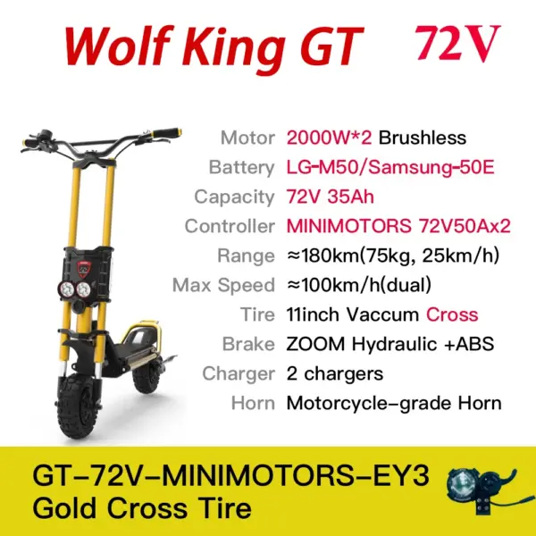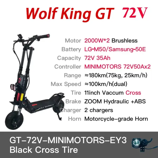 KAABO Wolf king GT Pro + Wolf Warriors 11 Inch 2000W*2 72V 35Ah EY3 Display Official Original Electric Scooter