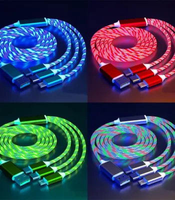 Glowing LED 3 IN 1 Cable For Samsung Xiaomi iPhone Flowing Streamer Light Fast Charger USB C Cord Luminous Type C Cable