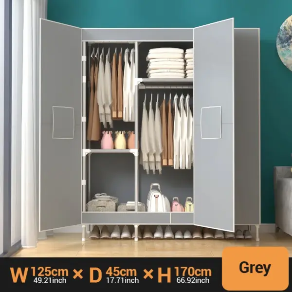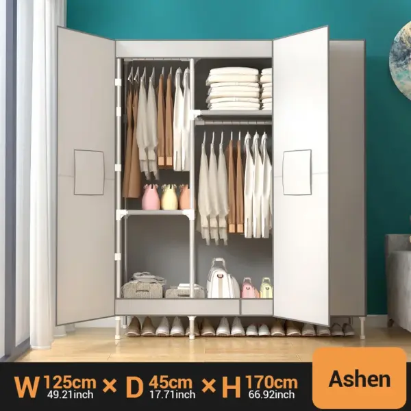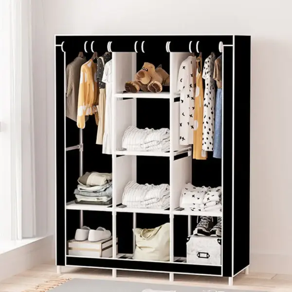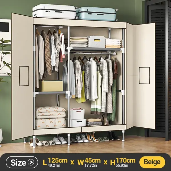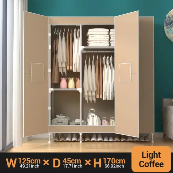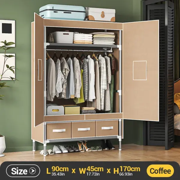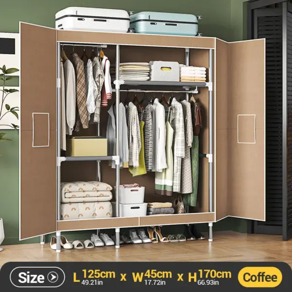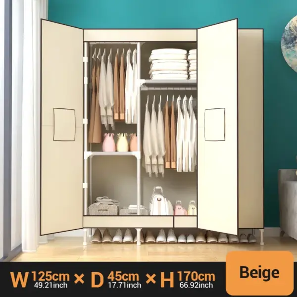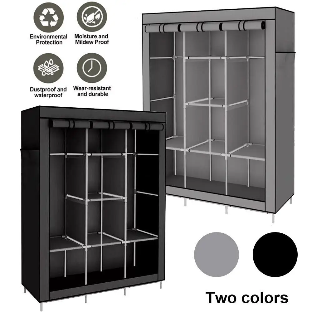 Portable Large Fabric Canvas Wardrobe Canvas Wardrobe With Hanging Rail Sheing Fabric Cloth Cupboard