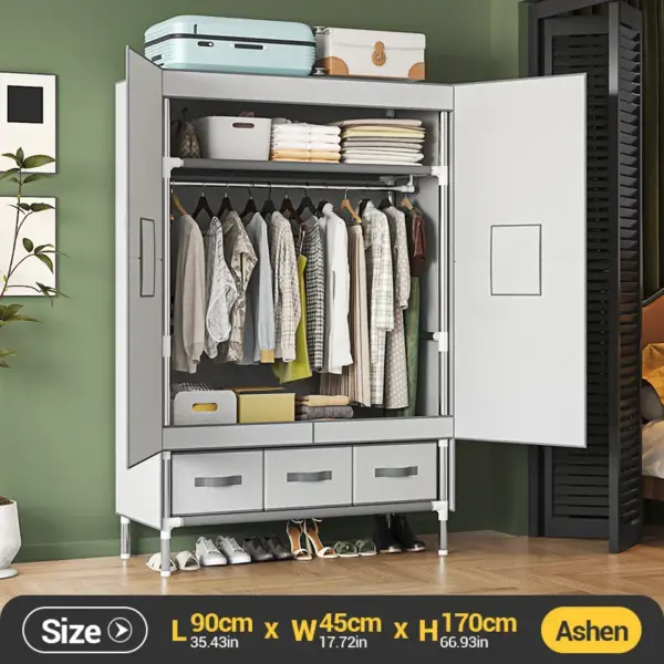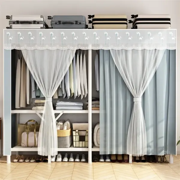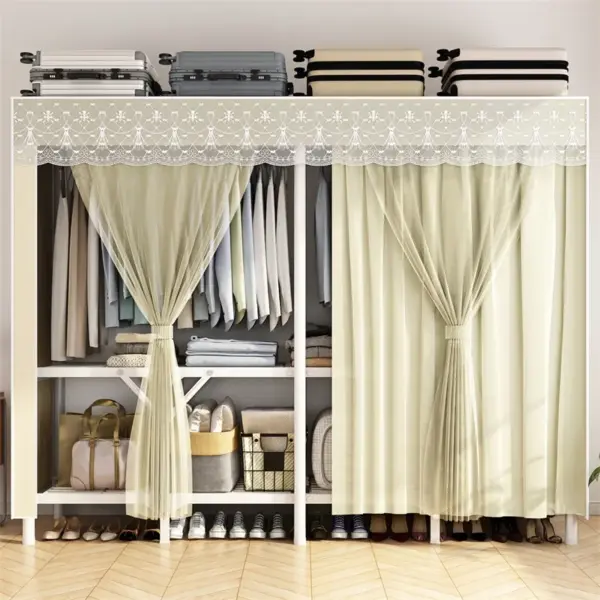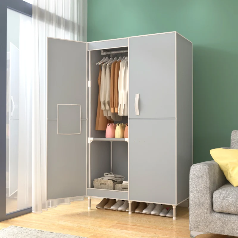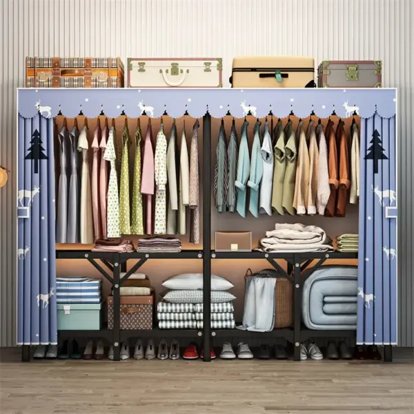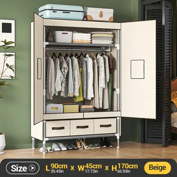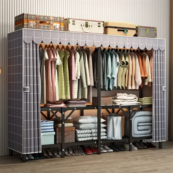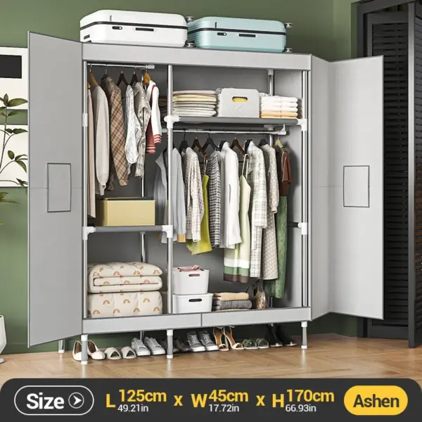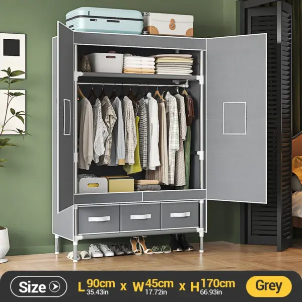 Portable Large Fabric Canvas Wardrobe Canvas Wardrobe With Hanging Rail Sheing Fabric Cloth Cupboard