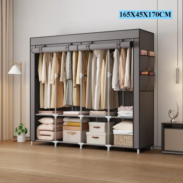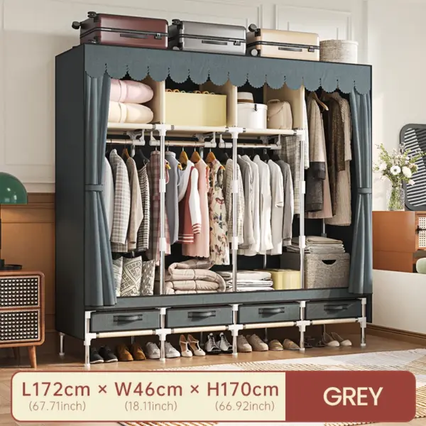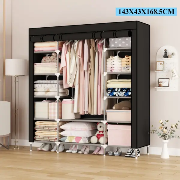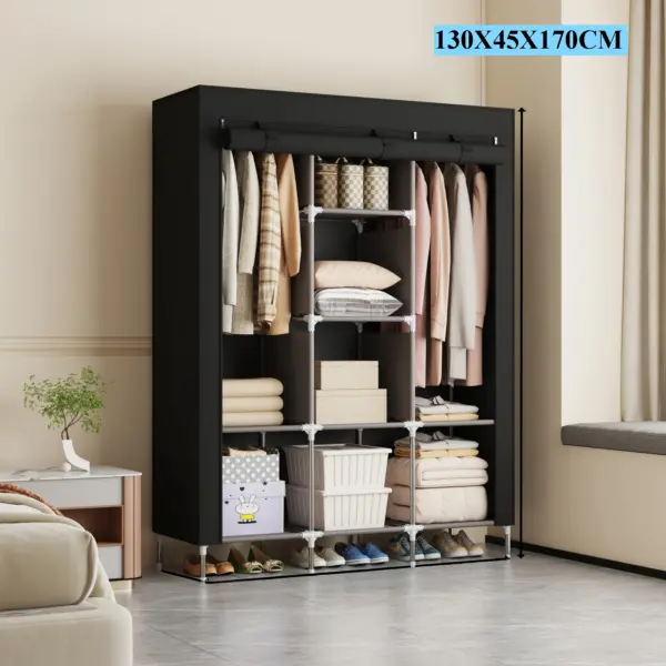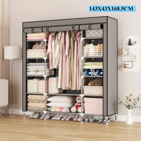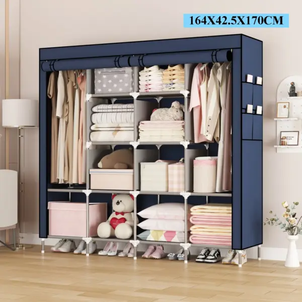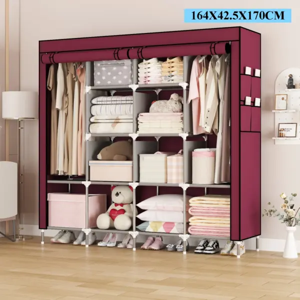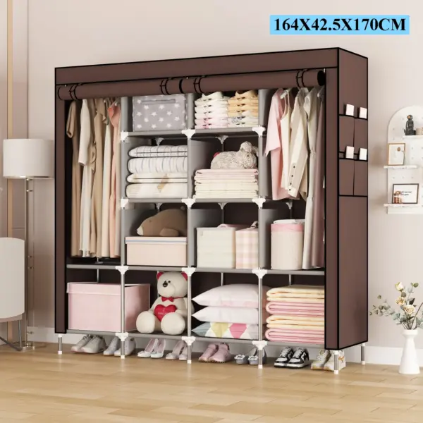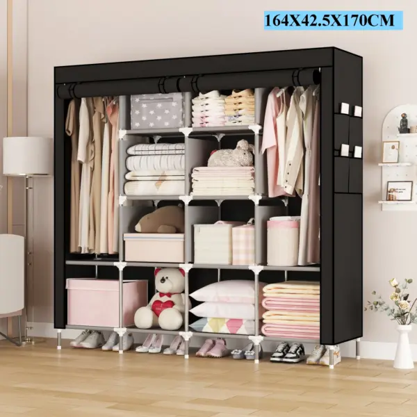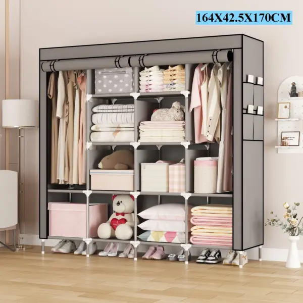 67″ Clothes Closet Portable Wardrobe Clothes Storage Rack with 12 Shelves and 4 Side Pockets,Storage Cabinet Bedrooms Closet