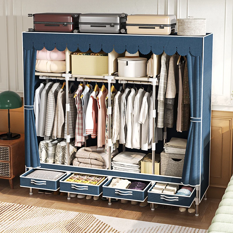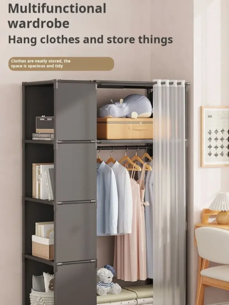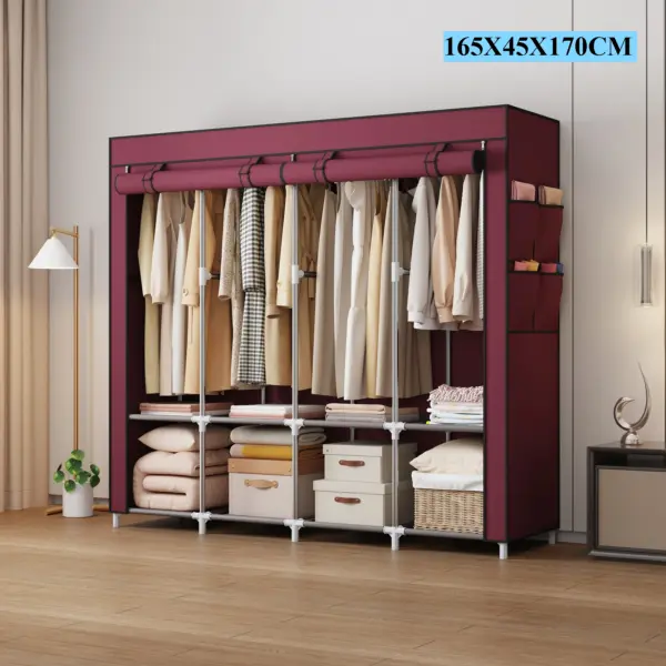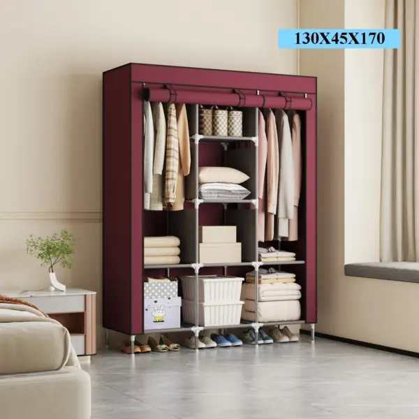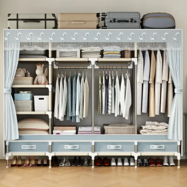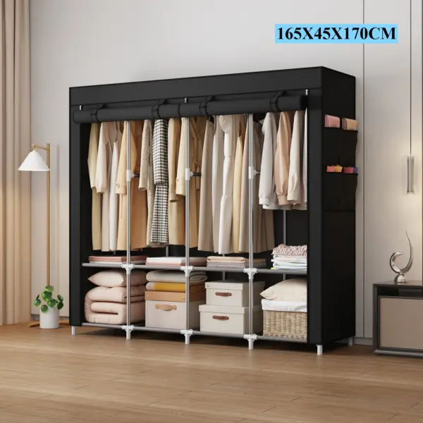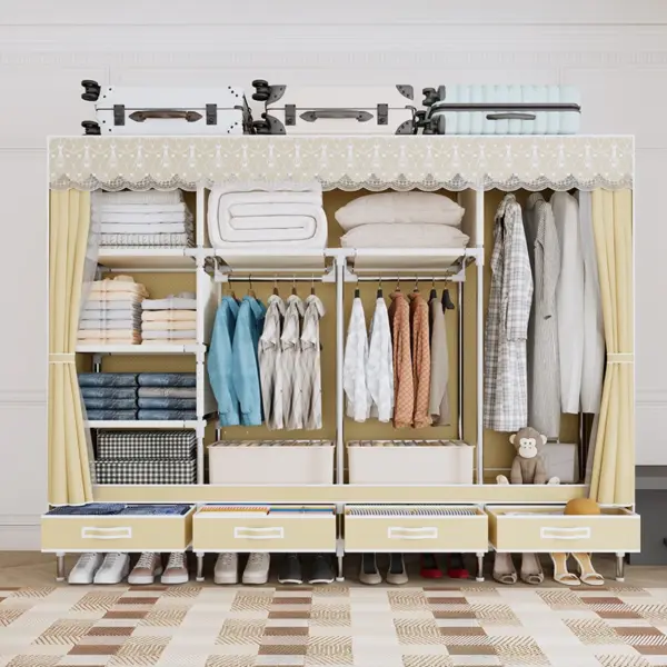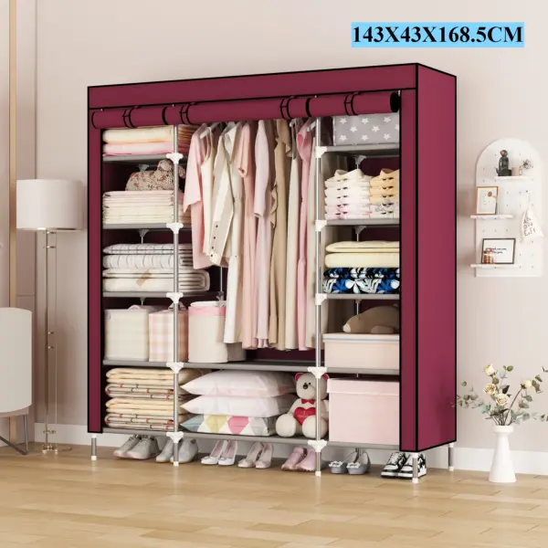67″ Clothes Closet Portable Wardrobe Clothes Storage Rack with 12 Shelves and 4 Side Pockets,Storage Cabinet Bedrooms Closet