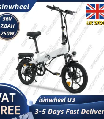 isinwheel U3 White Foldable Electric Bike, 35miles Range, Fast Charge, Front Suspension, Easy to Carry, isinwheel E Bike
