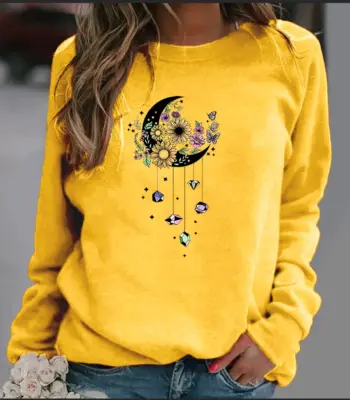 New Women’s Hoodie European Moon Flower Printed Crew-neck Hoodie Sweatshirt Streetwear Women Aesthetic