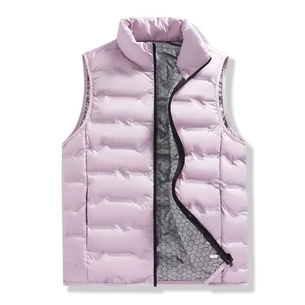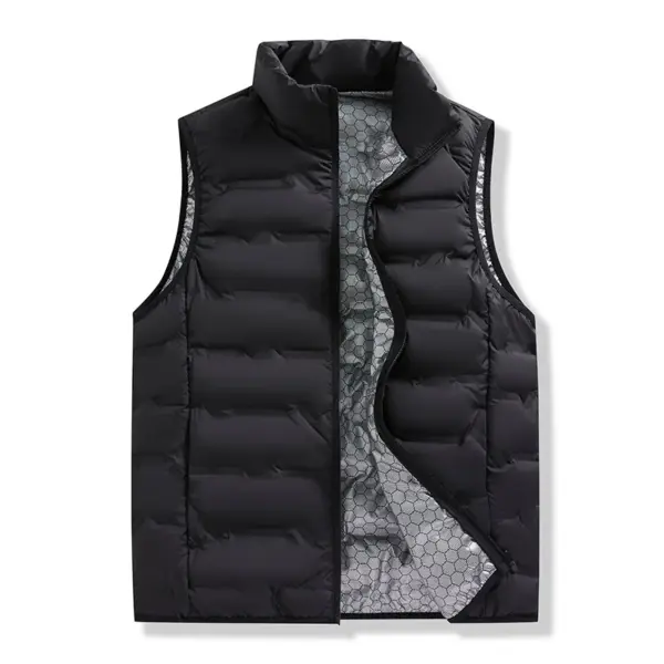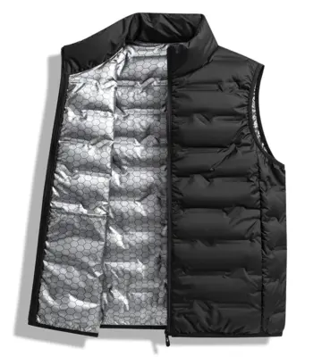 Outdoors Graphene Self-heating Down Vests Men Solid Windproof Pleated Winter Vests Classic Stand Collar Warm Waistcoats