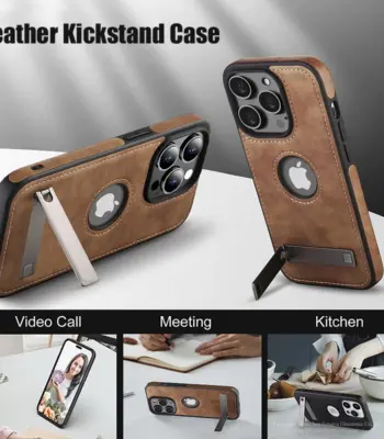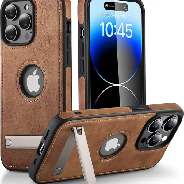 Leather Kickstand Phone Cases for iPhone 16 15 13 Pro Max 14 Plus 12 11 Mobile Case Shockproof Flexible Soft Grip Back Cover