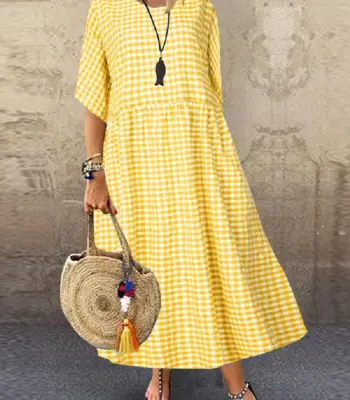 ZANZEA Women 2024 Summer Bohemian Maxi Dress Elegant Plaid Check Printed Robe Fashion Casual Holiday A Line Long Dress Oversize