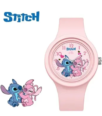 Disney Stitch Children’S Watch Cute Pink Angel Round Skin Touch Silicone Electronic Watch Decorative Accessory Kid Gifts