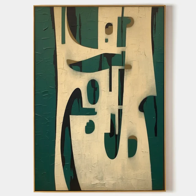Abstract Dark Green Wall Art Minimalist Green Wabi Sabi Canvas Handmade Nordic Painting Modern Home Wall Decor for Living Room