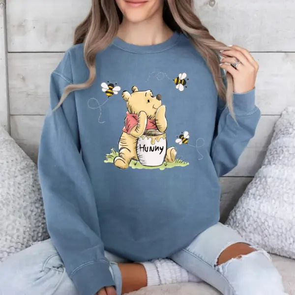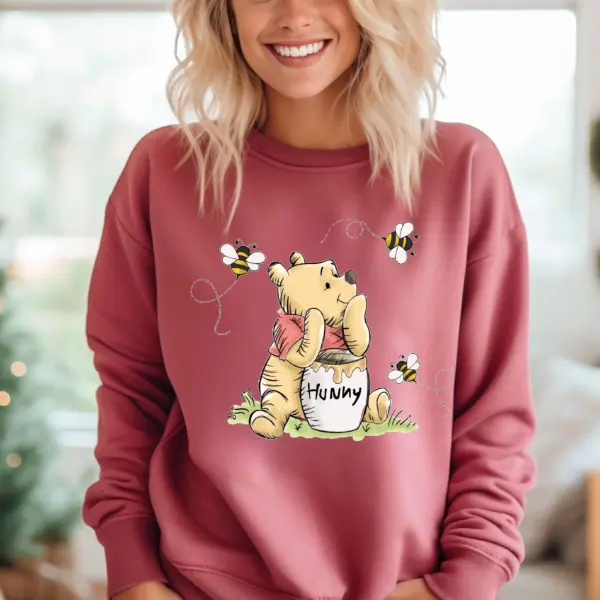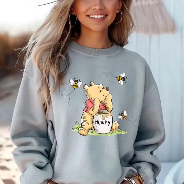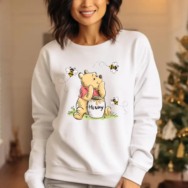 Disney Winnie The Pooh Print Womens Fleece Sweatshirt 100 Cotton Long Sleeve Crewneck Plus Size Oversized for Travel Shopping