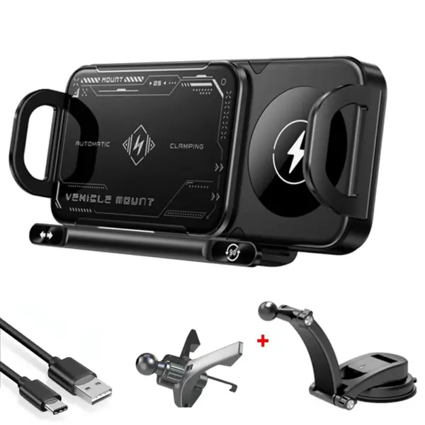 Dual Coil Fold Screen Car Fast Wireless Charger Stand For Samsung Galaxy Z Fold 7 6 5 4 S24 Ultra Xiaomi iPhone 16 15 14 Pro Max