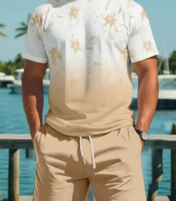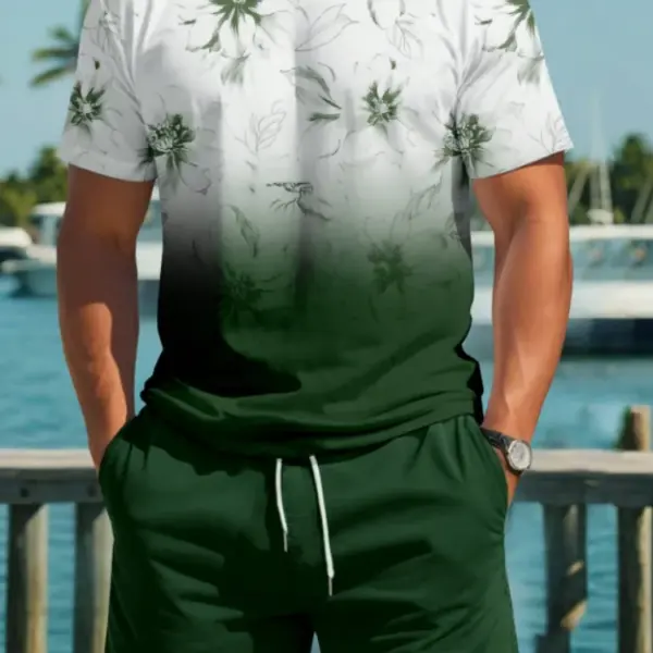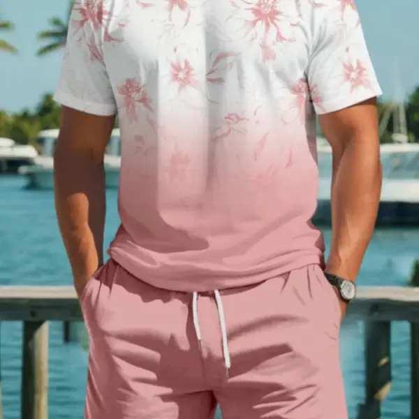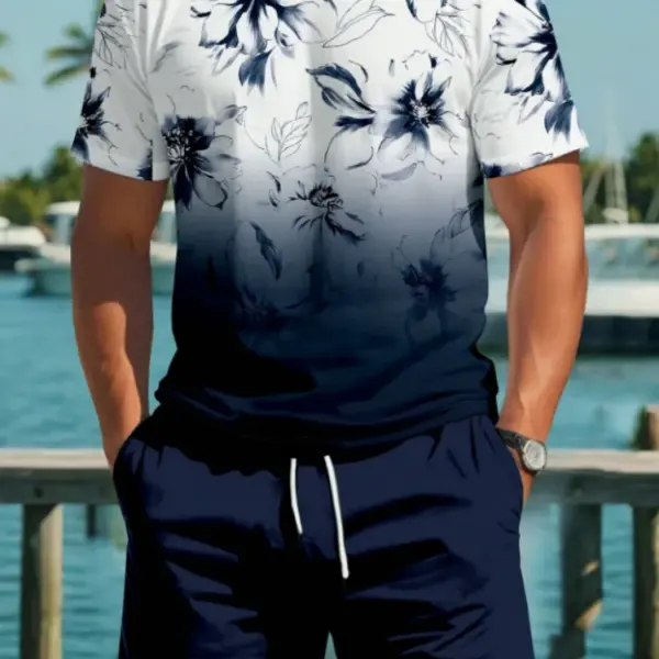 Bohemian Short-Sleeve T-shirt And Shorts Suit Sports Men Summer 2 Piece Short Sets Gym Beach Blossom Printed Matching Tracksuits