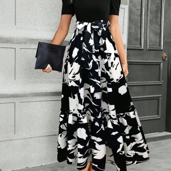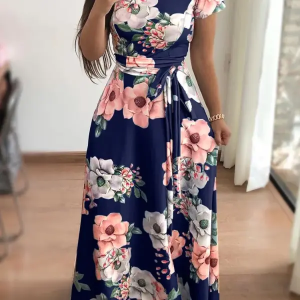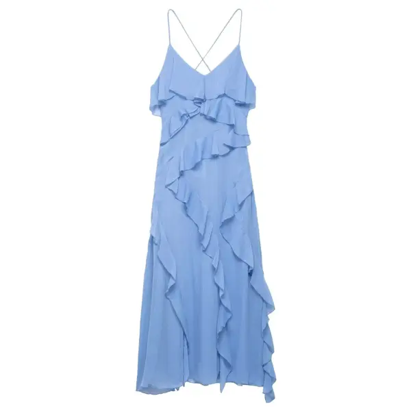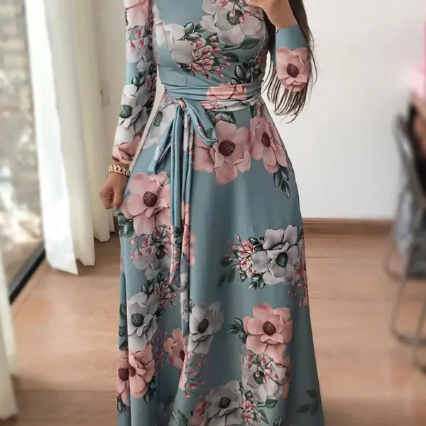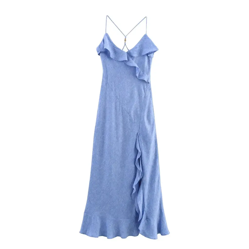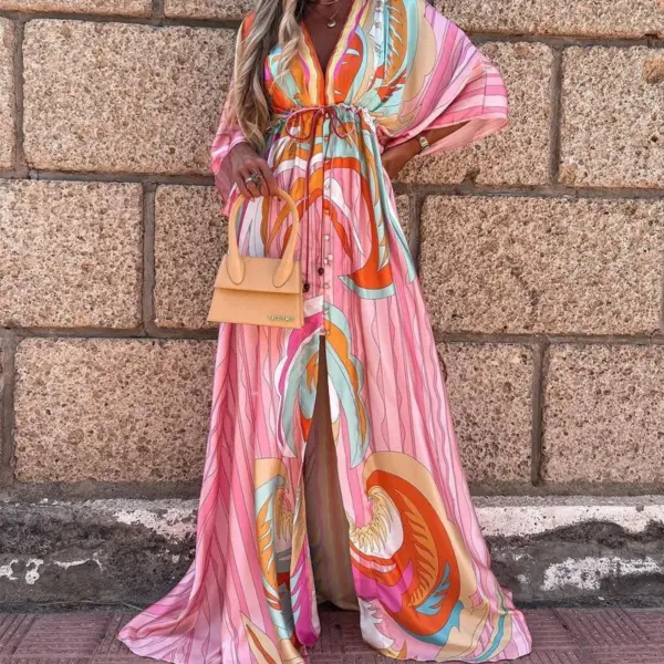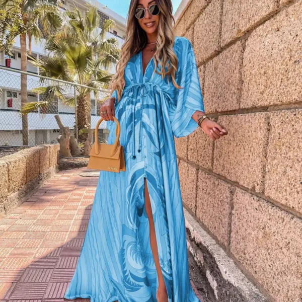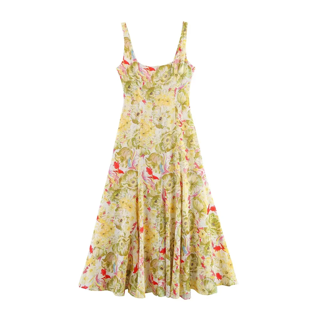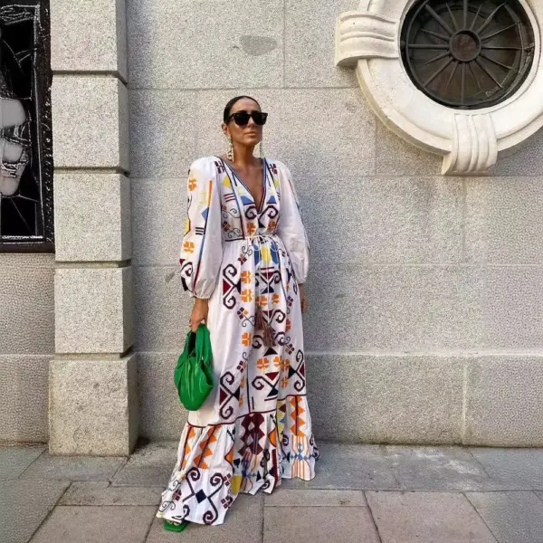2024 New European and American Cross border Summer Long Dress Women’s Sleeveless V-neck Printed Sexy