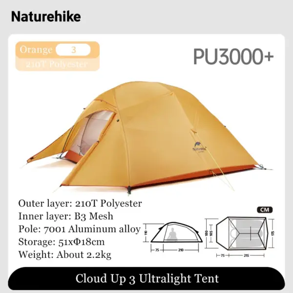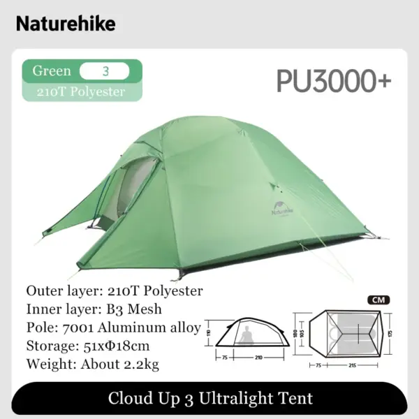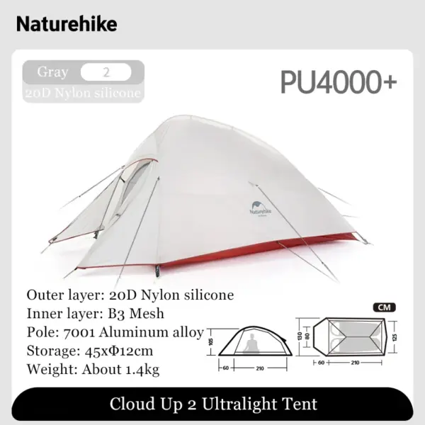 Naturehike Outdoor Upgrade Cloud Up 2 3 Person Tent 20D Nylon Silicone Double Layer Aluminum Pole Ultralight Camping Hiking Tent