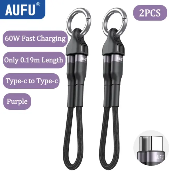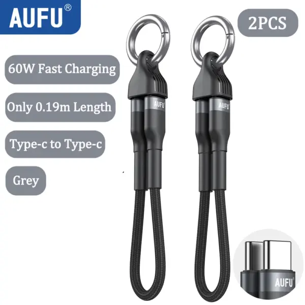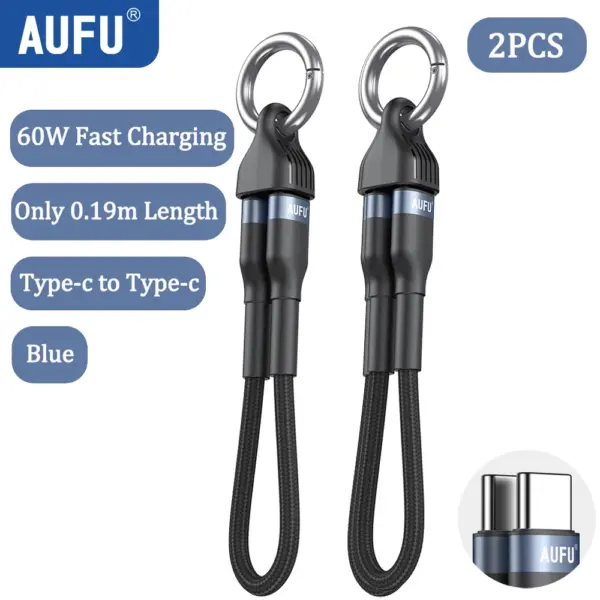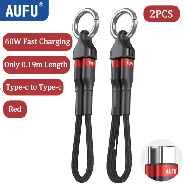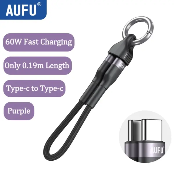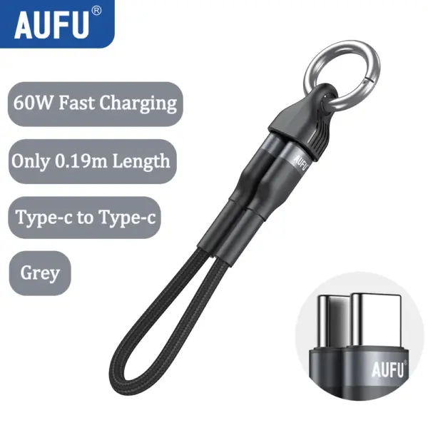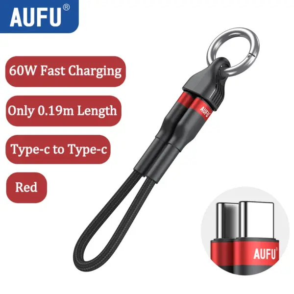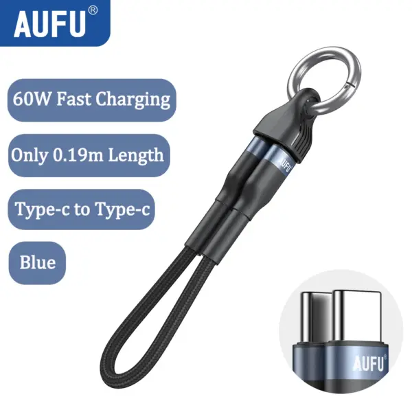 AUFU Portable Keychain USB C Charger Cable Short 60W Fast Charging Cord Type C Short Charging Cable for Phone MacBook Power Bank