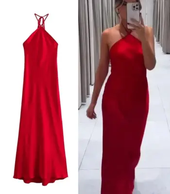 2024 Halter Long Dresses for Women Backless Satin Dress Woman Off Shoulder Sexy Midi Dresses Elegant Evening Party Dress