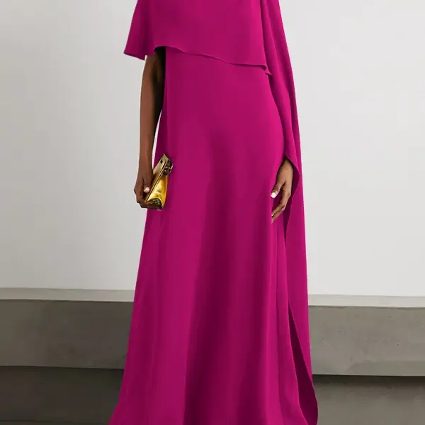 Asymmetric Loose Fit Wrap Dress for Women Solid Color Round Neck Evening Dresses 2024 Fashion Floor Length Party Gowns