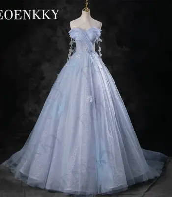 EOENKKY Blue Off Shoulder Princess Prom Dresses Celebrity A Line Pearls 3D Flowers Evening Gown платье на выпускной Customized