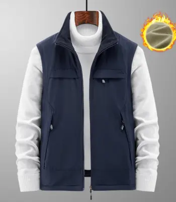 Basic Style New Men Outdoor Vest Men’s Multi-Pocket Loose Vest Tooling Casual Jacket Vest Men Travel Fishing Work Outdoor Vest
