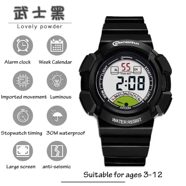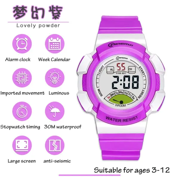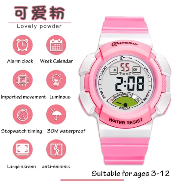 UTHAI GB02 Children’s Boys’ Sports Electric watch 30M Waterproof LED Alarm Clock Student Kids Girls’ Pink Fashion Cute Watches