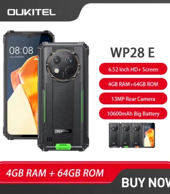 Oukitel WP28 E 4G Rugged Smartphone Android14 10600mAh Battery 4GB+64GB Mobile Phone 6.52 Inch HD+ 13MP Camera 18W Cellphone