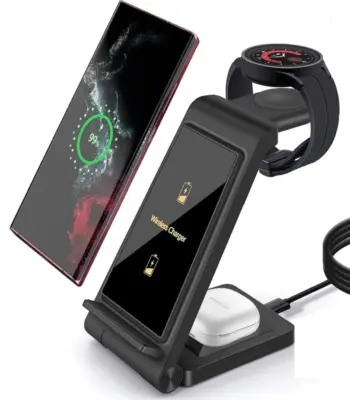 3 in 1 Wireless Charger for Samsung S24 S23 Ultra/S22/S21/Note 20/Z Flip 6/Z Fold 6 Fast Charging Station for Galaxy Watch 7 Pro