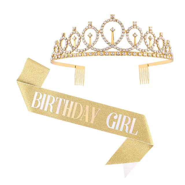 Rhinestone Birthday Girl Tiara Crown and Sash Glitter Birthday Girl Sash Gift for Girls Happy Birthday Party Decoration Supplies