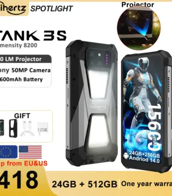 Unihertz tank 3s 8849 powered smartphone with projector 24GB 256GB Dimension 8200 cellphone 15600mAh 66W charger 64MP 5G phone