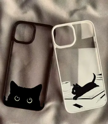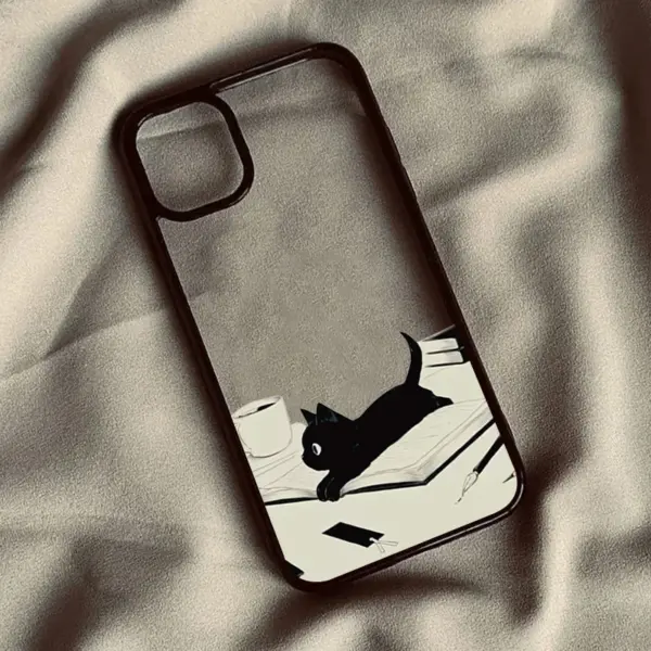 Cute Black Cat Pattern Hard Clear Phone Case For iPhone 15 16 17 Pro Max 16 Plus 17 Air 16E 14 13 12 11 Pro MINI Anti-fall Cover