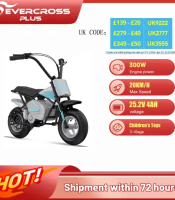 EVERCROSS PLUS EV07M Electric Dirt Bike for Kids, Speed Up to 20 km/h, 10 km Range, 11″ Wheels, Suitable for Children 3-12 Years