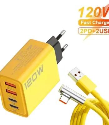 Total 120W USB Charger 4 Ports Type-C Quick Charge 3.0 Phone Adapter For Phone 6A Fast Charging Cable For Samsung iPhone Xiaomi