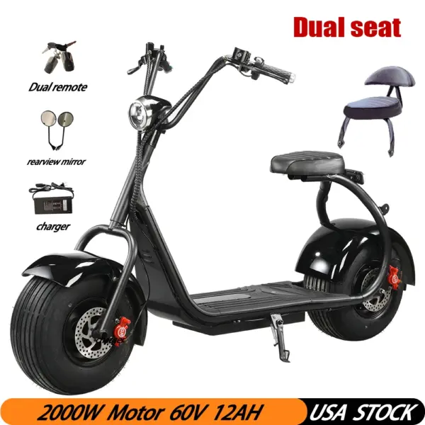 Citycoco Electric Scooter 2000W Motor 60V12AH Lithium Battery 2 Wheel Scooter Suitable For Adults To Work And Commute Outdoors