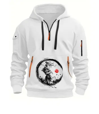 Japanese Samurai Graphic 2025 New Multi Pocket Zipper Fleece Hooded Casual Shirt Men Loose Pullover Fashion Sweatshirt Top