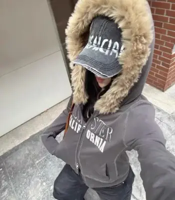 Women Hooded Sweatshirt Fleece Lined Hood Zipper Soft Fabric Double Zipper Design Slim Fit Casual Outfit Trendy Must Have Gray