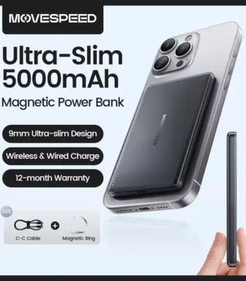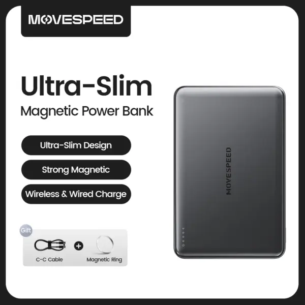 MOVESPEED 5000mAh Magnetic Power Bank Slim Wireless Powerbank Portable External Battery for Magsafe for iPhone 16 15 Samsung S24